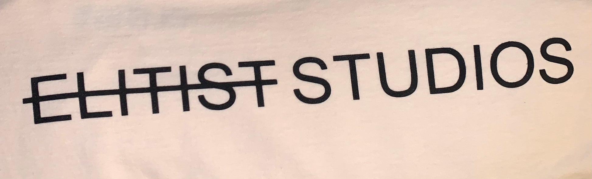 - Black ELITIST STUDIOS logo screen printed on off-center back of shirt.