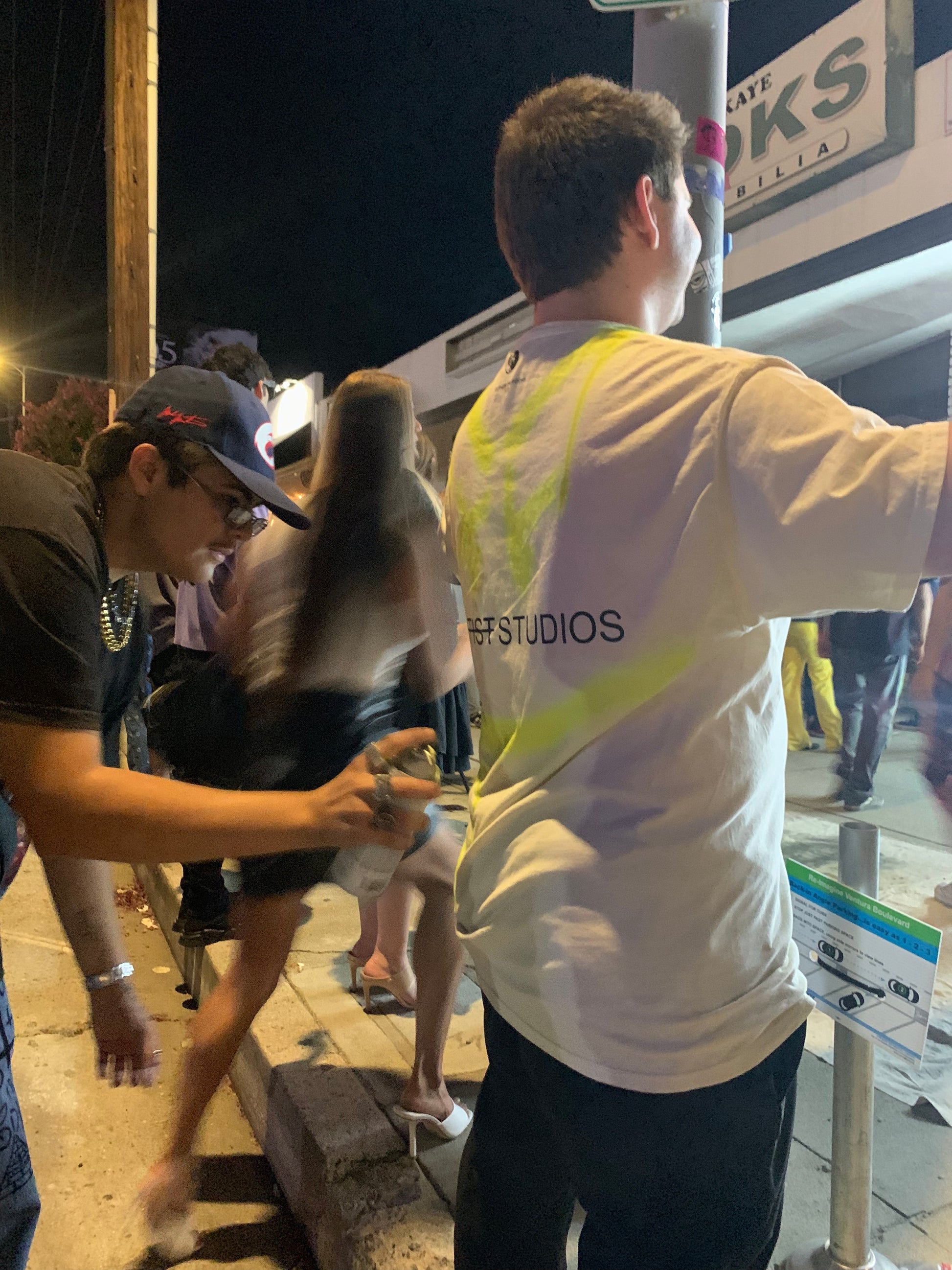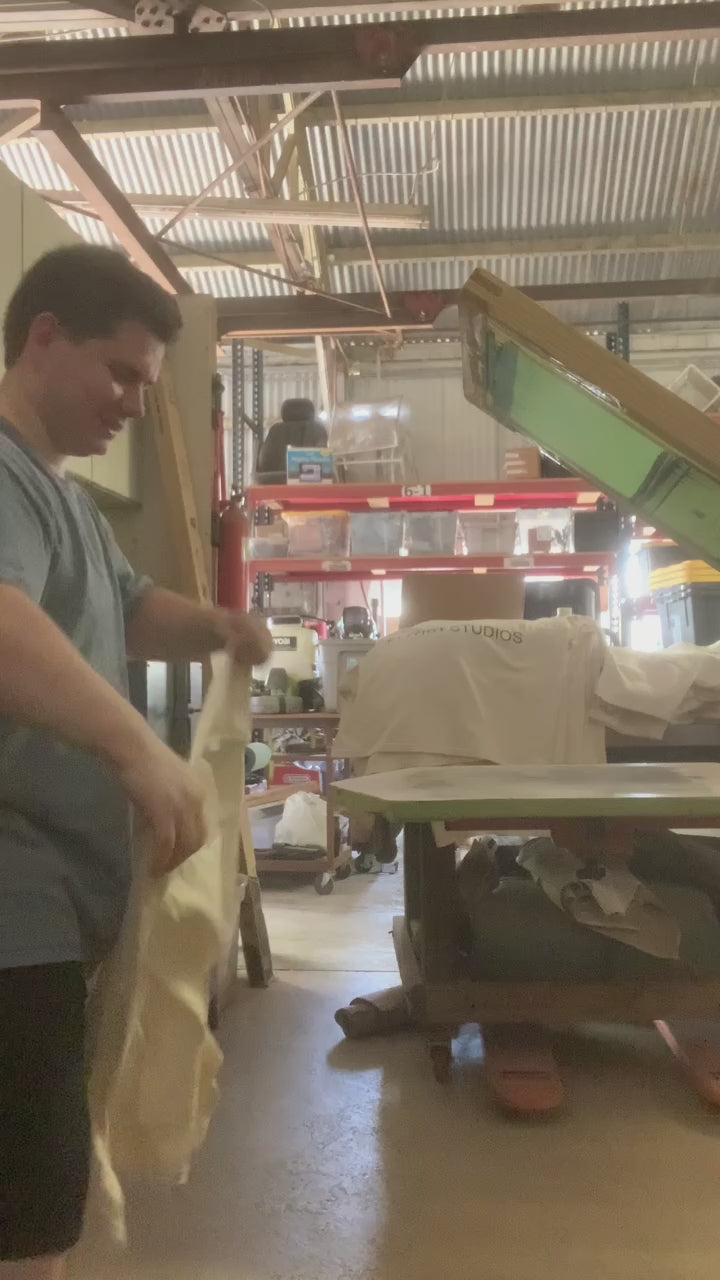 - Off-white sand color t-shirt to symbolize the California beaches.